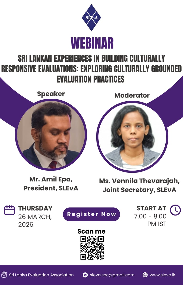 [SLEvA MEAL Webinar] - #03/26 "Sri Lankan Experiences in Building Culturally Responsive Evaluations: Exploring Culturally Grounded Evaluation Practices"
